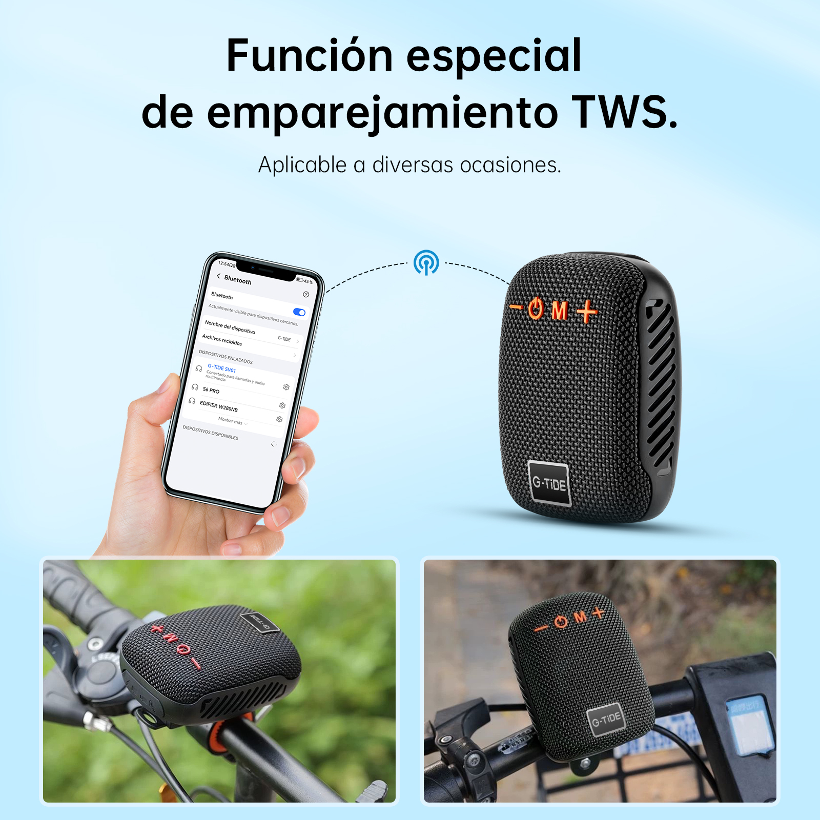 Un rendimiento de audio preciso y consistente garantiza una potente reproducción multimedia; transmisión estable dentro de 10 metros, memoria de emparejamiento automático y soporte para emparejamiento simultáneo de dos altavoces (TWS).